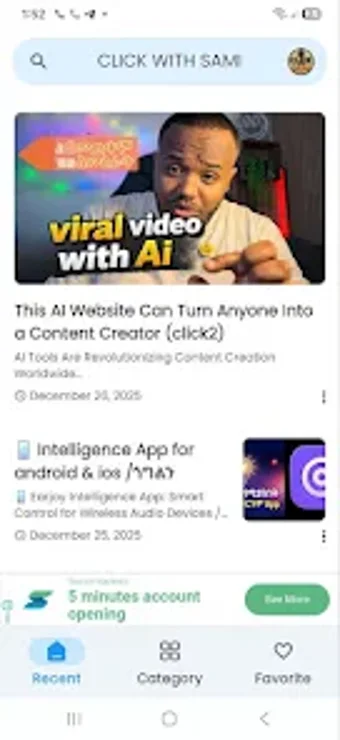 Click with Sami is an Android application focused on delivering essential digital education tailored for individuals looking to enhance their online presence. The app offers a variety of resources, including social media tutorials, affiliate marketing guides, and tool reviews, all designed to provide users with practical insights and strategies. With a clean and user-friendly interface, it serves as a centralized hub for anyone interested in improving their skills in the digital landscape.